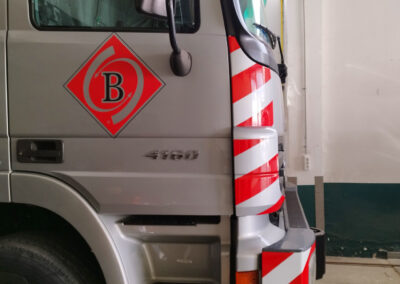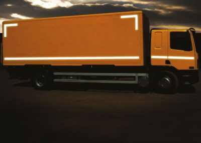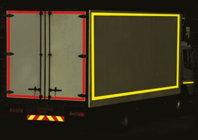 - Πλήρης Περιμετρική Σήμανση Οχημάτων: Αναλαμβάνουμε την πλήρη εφαρμογή της ανακλαστικής σήμανσης σύμφωνα με τις απαιτήσεις του κανονισμού EC 104 για τον στόλο σας. Αυτό περιλαμβάνει την εφαρμογή σε πλευρές, οπίσθια τμήματα και, όπου απαιτείται, στο μπροστινό μέρος.