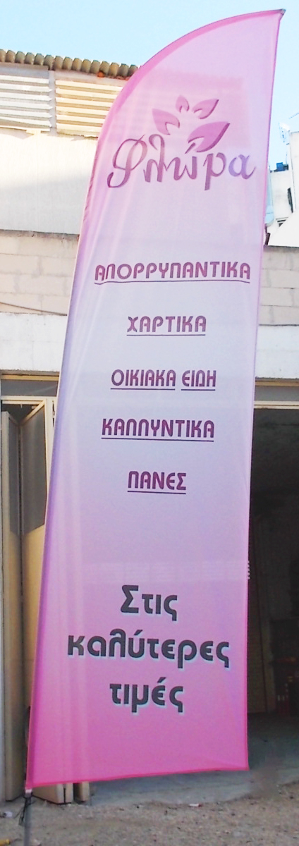 Μπορούμε να εκτυπώσουμε από τη μια ή και τις δυο όψεις του banner- σημαίας, για να προβάλλετε το λογότυπό σας από διαφορετικές γωνίες.