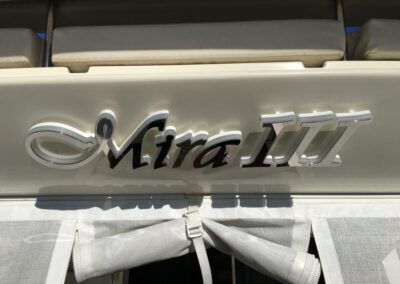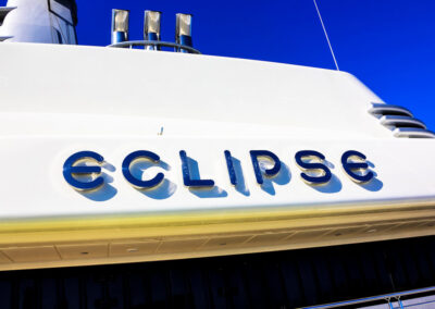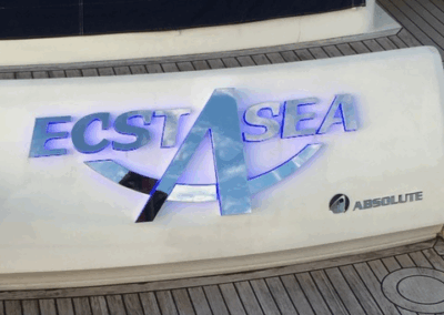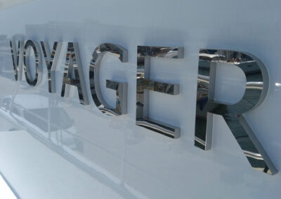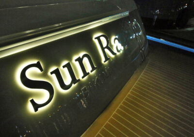Πολλές φορές, επιλέγεται και ο ενσωματωμένος φωτισμός LED (όπως φαίνεται στην εικόνα), ο οποίος προσδίδει μια εντυπωσιακή όψη στο σκάφος κατά τις νυχτερινές ώρες. Αυτό απαιτεί πρόσθετη καλωδίωση και στεγανές εγκαταστάσεις για την προστασία από την υγρασία. Η σωστή τοποθέτηση γραμμάτων inox όχι μόνο ενισχύει την αισθητική του yacht, αλλά και προσδίδει μια αίσθηση πολυτέλειας και μοναδικότητας.